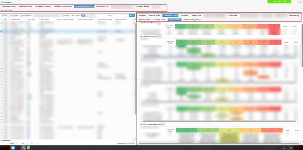 فعلى سبيل المثال، استنادًا إلى نتائج التصنيف الائتماني، يمكن اعتماد شروط تداول أكثر مرونة مع الأطراف الممتازة، بينما تفرض شروط أكثر صرامة على الأطراف الأضعف، لتقليل المخاطر. وعند وجود عدم تطابق بين شروط التداول والنتائج الائتمانية، يقوم النظام بتفعيل خفض للتصنيف، مما يسهل على الشركات اتخاذ إجراءات رقابية.
