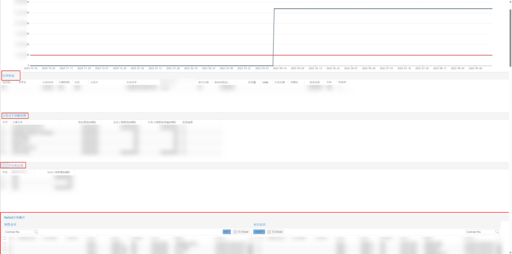为解决信用限额监控不及时、预警滞后的问题,标准化方案提供了授信额度自动和手动计算两种方式,支持占用额度、未来占用额度峰值的计算,并详细展示未释放和已释放的合同信息。